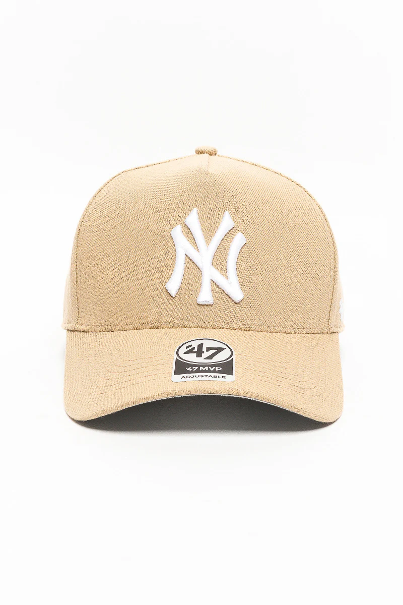 Keep it clean, sharp, and effortlessly cool with this clean beige 47 NY Yankees MVP Snapback. The neutral tone makes it the ultimate streetwear essential, easy to pair with anything, from a fresh white tee to a layered fit. Its understated beige tone brings that minimalist edge while still standing out with laid-back confidence. Built with signature ’47 Brand quality, this cap is all about comfort, style, and versatility... perfect for topping off your fit for the day!