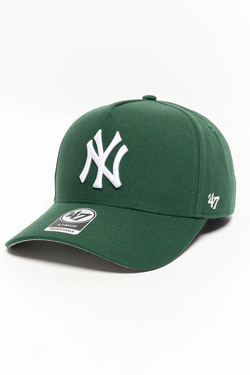 Keep it clean, sharp, and effortlessly cool with this emerald dark green 47 NY Yankees MVP Snapback. The neutral tone makes it the ultimate streetwear essential, easy to pair with anything, from a fresh white tee to a layered fit. Its understated deep green shade brings that minimalist edge while still standing out with laid-back confidence. Built with signature ’47 Brand quality, this cap is all about comfort, style, and versatility... perfect for topping off your fit for the day!