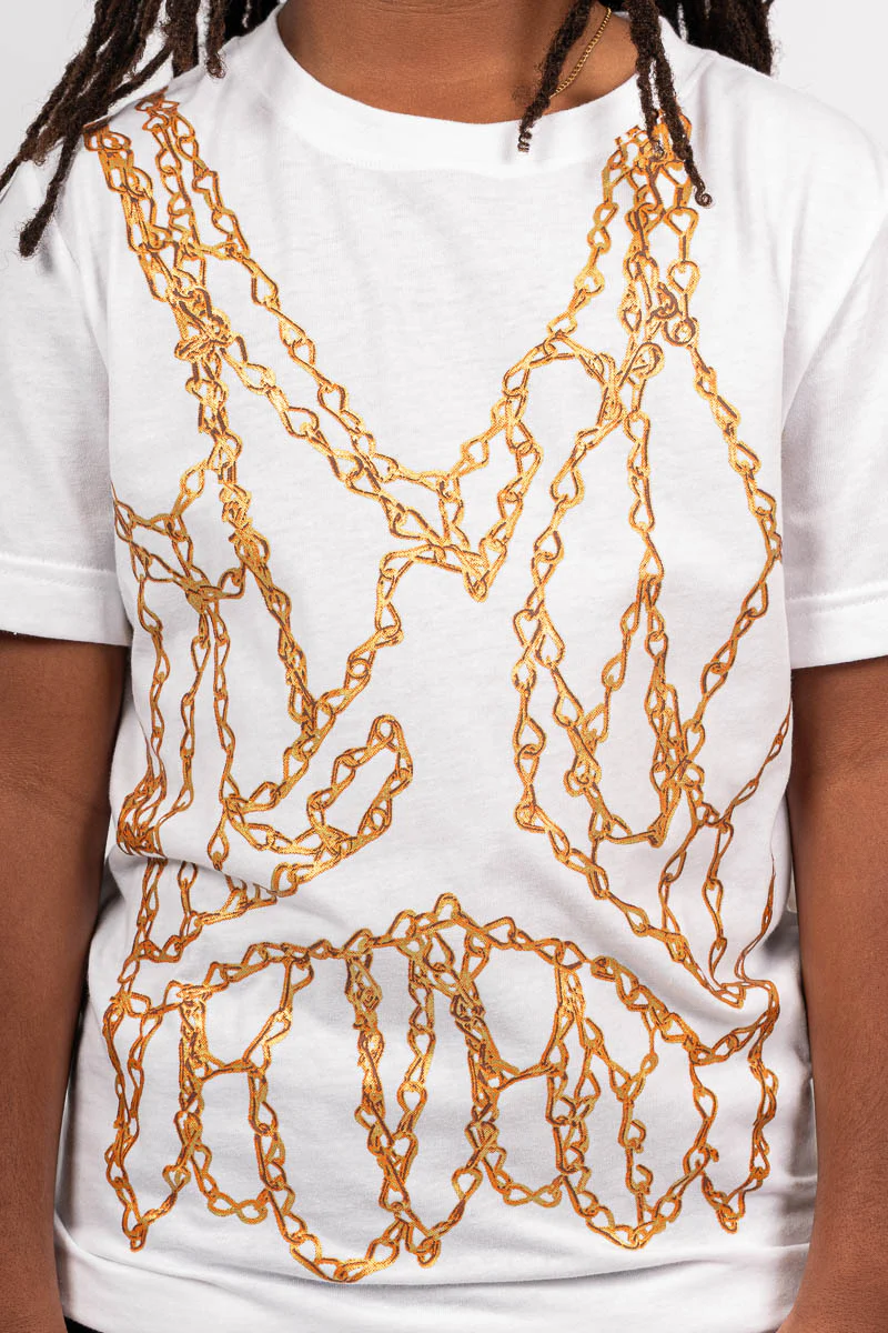 This Jordan graphic tee effortlessly blends casual streetwear with a playful design with the mimicking of draped gold chains, the classic crew neck and short sleeves keep it casual and easy to style—pair it with joggers, jeans, or shorts for a fresh, clean inspired look.